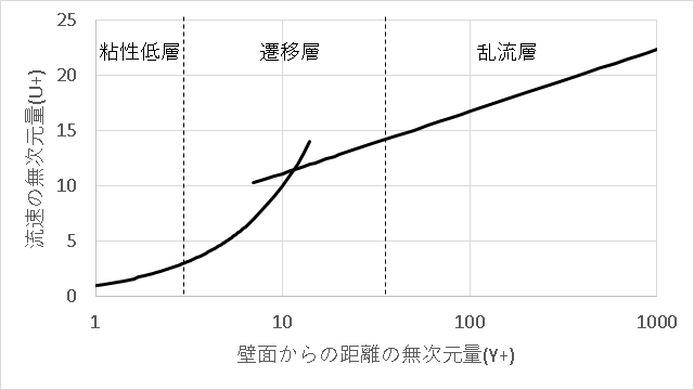 流体解析では壁面近傍の取り扱いとして、壁関数というものでモデル化されているのが一般的です。