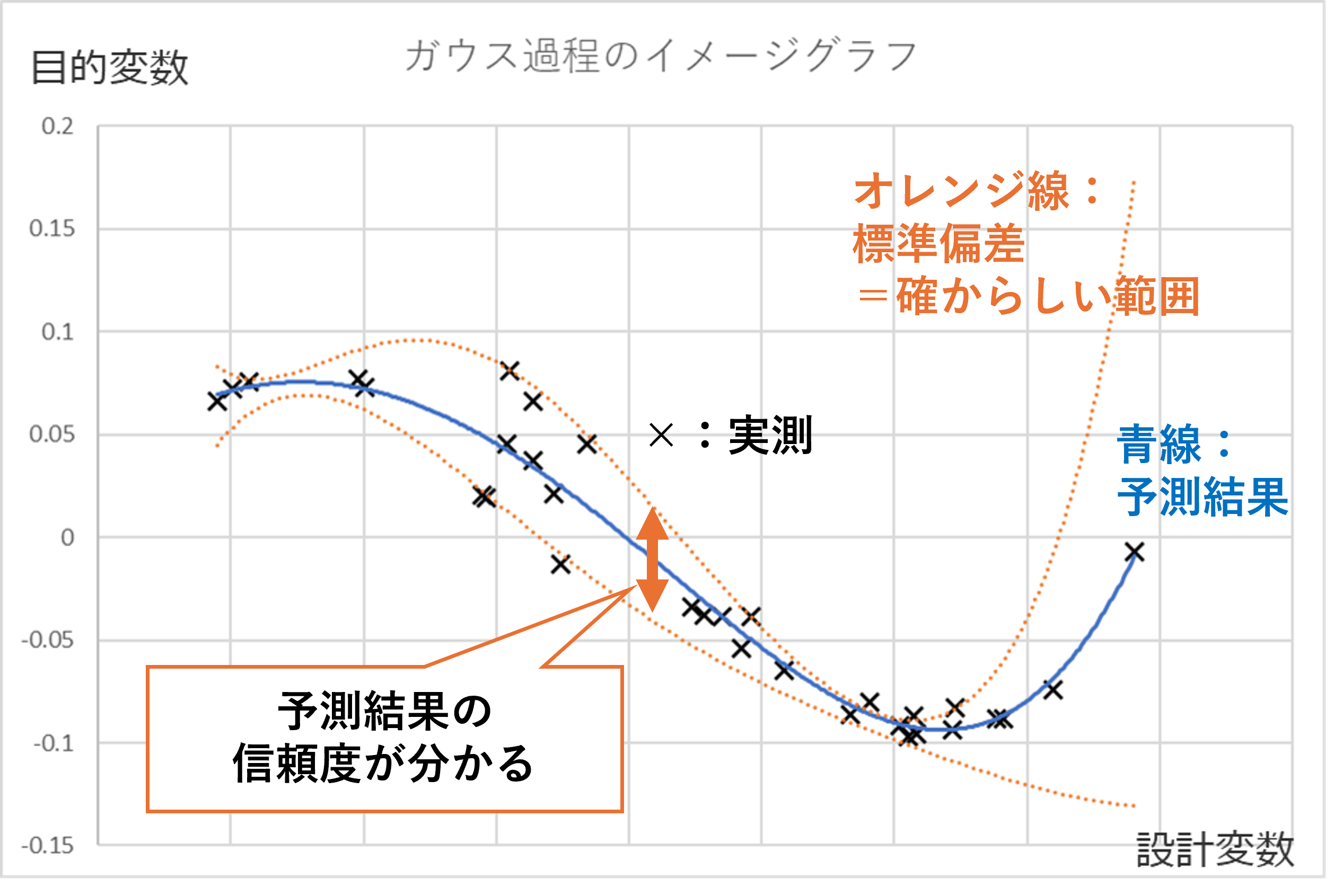 ガウス過程は統計的な数理モデルであり、予測結果に対する不確実性や信頼区間を提供します。そのため、予測された結果が信頼できるかどうか(信頼度)を解釈することができます。