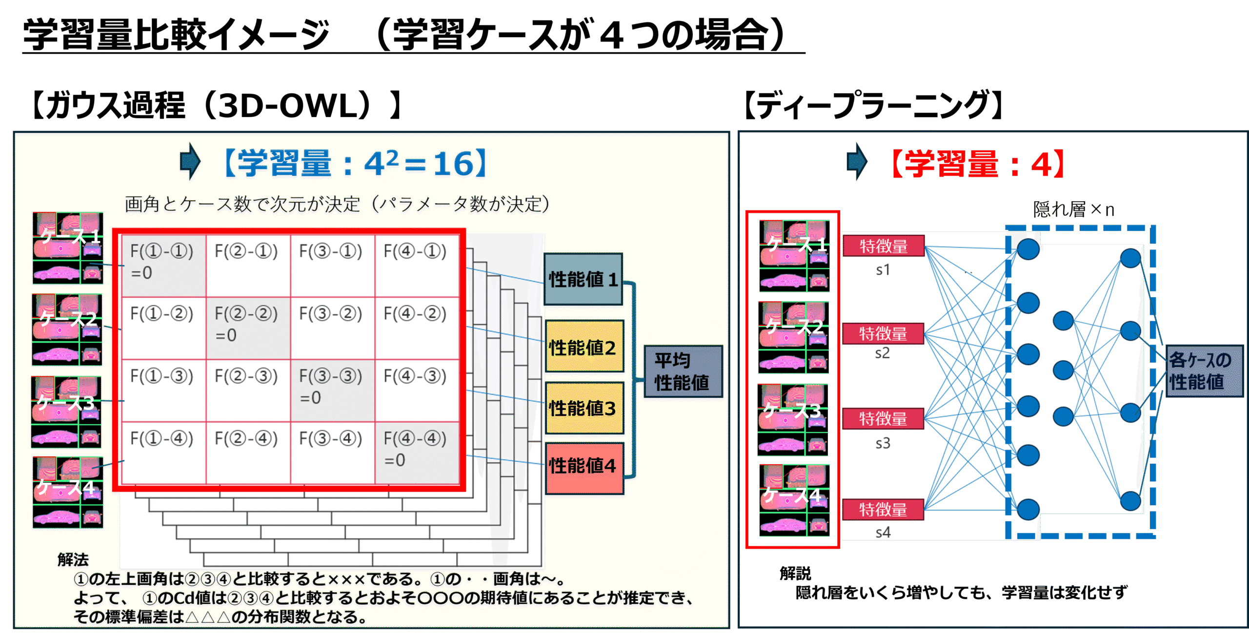 ガウス過程は、少ないケース数でも学習量が多く、比較的早く収束するという特徴があります。少しだけ数学的に言えば、学習量がケース数の二乗に比例して増えます。