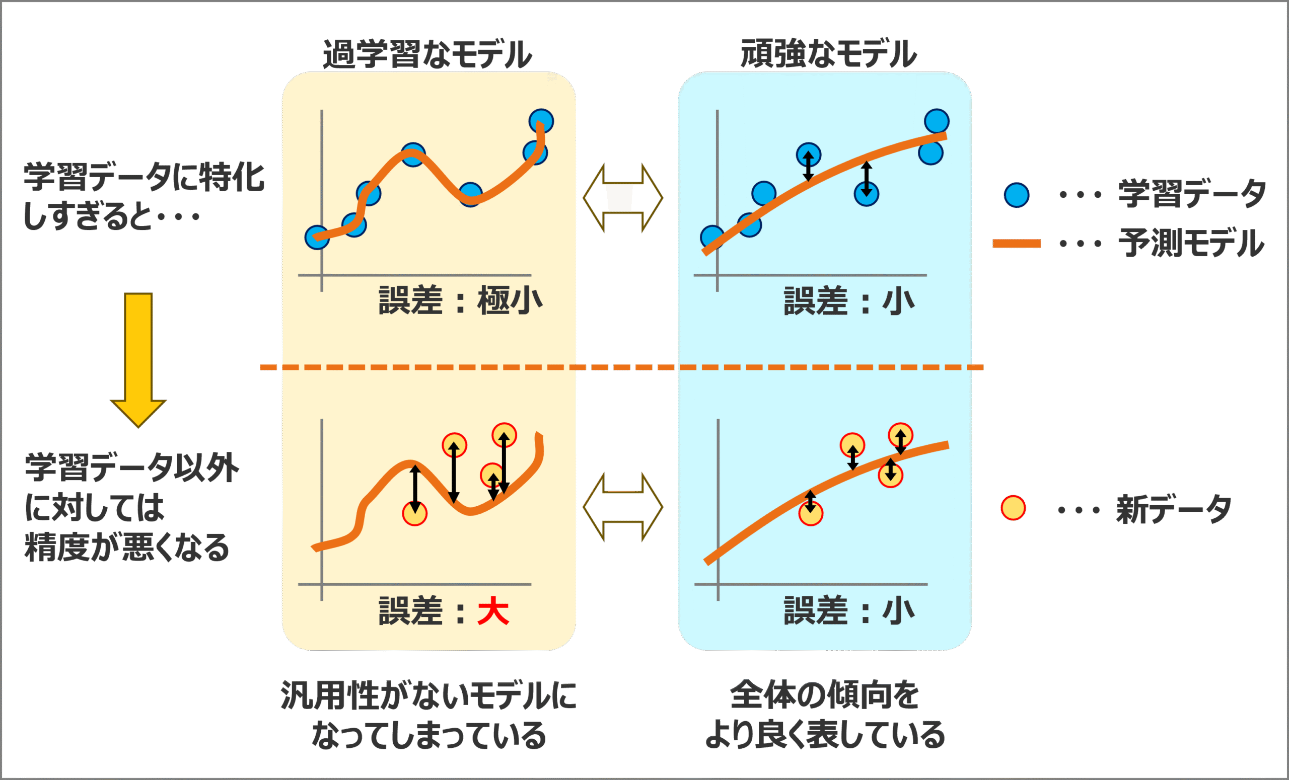 新しいデータに対しては予測精度が悪くなってしまう現象のことです。